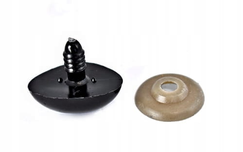 Nosek świetny do wyrobu pluszowych, szydełkowanych czy inaczej tworzonych zwierzątek. Do mocnego zamocowania do materiału posiada gwint z zakrętką, na który z drugiej strony nakłada się zatyczkę, która trzyma nos bezpiecznie w jednym miejscu i chroni przed ewentualnym wypadaniem.