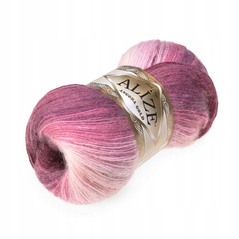 Duża wydajność, domieszka wełny i lekko wystający włosek dający efekt moheru. Jednak różnica względem włóczek moherowych jest spora, bo włosek w Angorze Gold jest delikatny i nie gryzący. Mimo dużej ilości włóczki na motku spektrum zastosowania jest bardzo szerokie, a przędza nadaje się na wyroby na każdą porę roku. Wersja Batik to dobrze dobrane połączenie barw, które w wyrobie tworzą powtarzające się pasy.