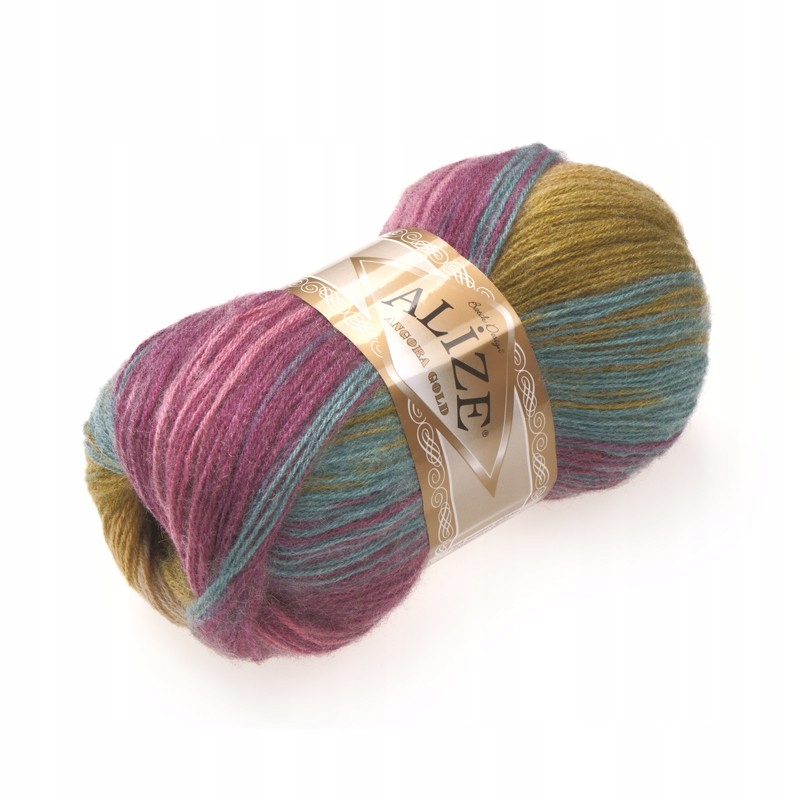 Duża wydajność, domieszka wełny i lekko wystający włosek dający efekt moheru. Jednak różnica względem włóczek moherowych jest spora, bo włosek w Angorze Gold jest delikatny i nie gryzący. Mimo dużej ilości włóczki na motku spektrum zastosowania jest bardzo szerokie, a przędza nadaje się na wyroby na każdą porę roku. Wersja Batik to dobrze dobrane połączenie barw, które w wyrobie tworzą powtarzające się pasy.