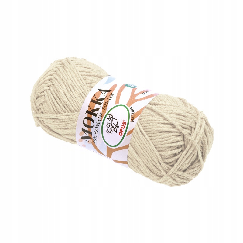 Włóczka Mokka Opus Natura bawełna len 50g/80m 2016 BEŻOWA