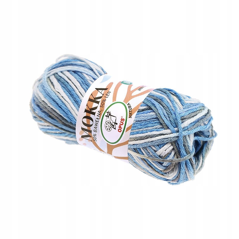 Włóczka Mokka Opus Natura bawełna len 50g/80m 9159 MULTI NIEBIESKA