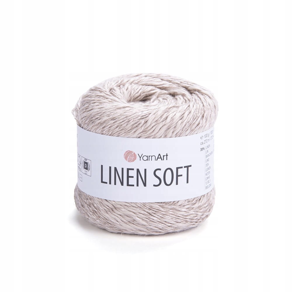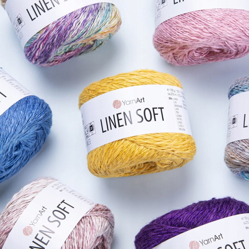 YarnArt Linen Soft to wyjątkowa włóczka, idealna na cieplejsze miesiące, dostępna w 40 wersjach kolorystycznych, zarówno gładkich, jak i melanżowych. W jej skład wchodzą wyłącznie naturalne włókna: len, wiskoza i bawełna, połączone w takich proporcjach, że całość daje naprawdę przyjemny i świetnie prezentujący się efekt. Przędza nie jest jednolita, co sprawia, że gotowa robótka wygląda bardzo interesująco.