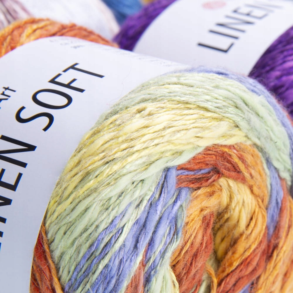 YarnArt Linen Soft to wyjątkowa włóczka, idealna na cieplejsze miesiące, dostępna w 40 wersjach kolorystycznych, zarówno gładkich, jak i melanżowych. W jej skład wchodzą wyłącznie naturalne włókna: len, wiskoza i bawełna, połączone w takich proporcjach, że całość daje naprawdę przyjemny i świetnie prezentujący się efekt. Przędza nie jest jednolita, co sprawia, że gotowa robótka wygląda bardzo interesująco.