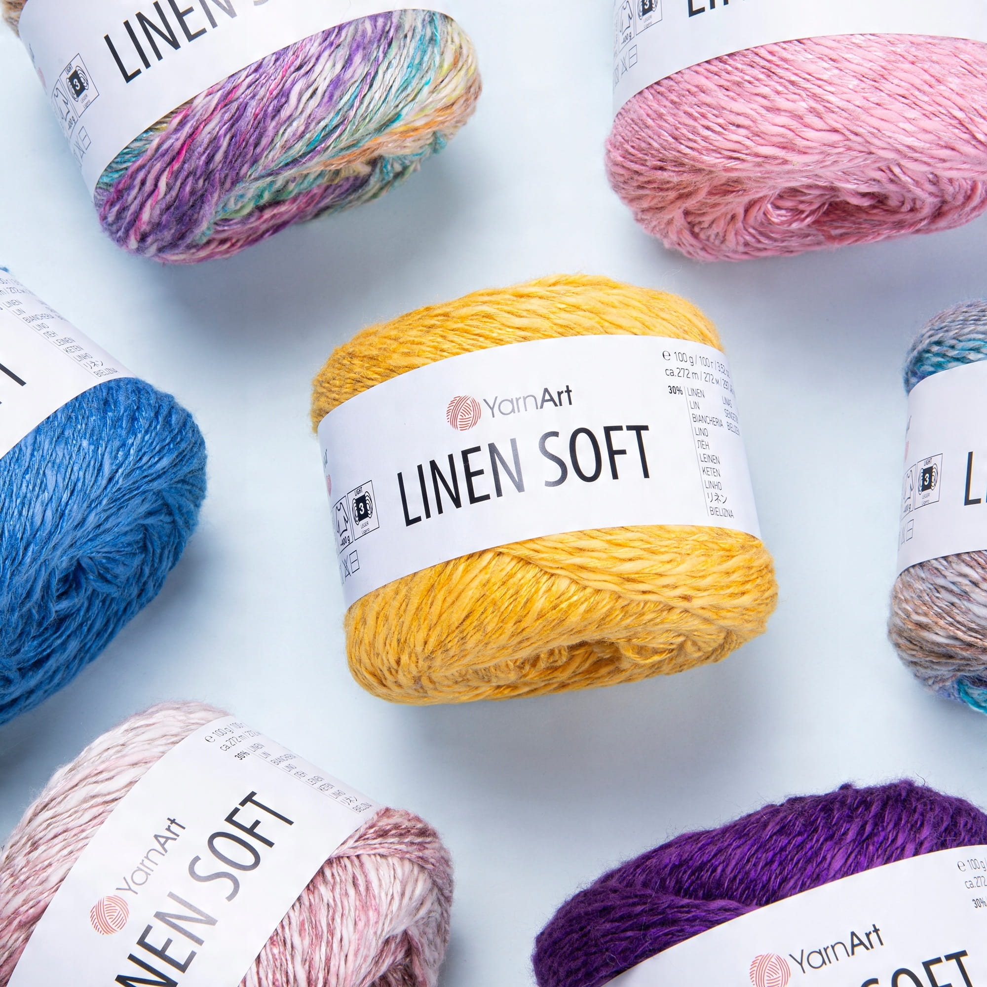 YarnArt Linen Soft to wyjątkowa włóczka, idealna na cieplejsze miesiące, dostępna w 40 wersjach kolorystycznych, zarówno gładkich, jak i melanżowych. W jej skład wchodzą wyłącznie naturalne włókna: len, wiskoza i bawełna, połączone w takich proporcjach, że całość daje naprawdę przyjemny i świetnie prezentujący się efekt. Przędza nie jest jednolita, co sprawia, że gotowa robótka wygląda bardzo interesująco.