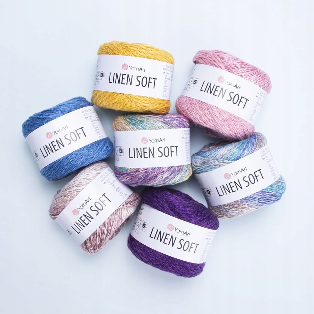 YarnArt Linen Soft to wyjątkowa włóczka, idealna na cieplejsze miesiące, dostępna w 40 wersjach kolorystycznych, zarówno gładkich, jak i melanżowych. W jej skład wchodzą wyłącznie naturalne włókna: len, wiskoza i bawełna, połączone w takich proporcjach, że całość daje naprawdę przyjemny i świetnie prezentujący się efekt. Przędza nie jest jednolita, co sprawia, że gotowa robótka wygląda bardzo interesująco.